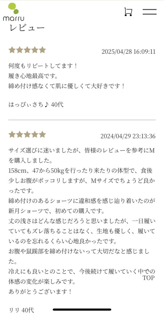 新月ショーツ生成りのレビューです。